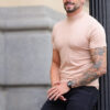 Camiseta Gola Alta Masculina Slim Bege Clara: Estilo e Conforto em Cada Detalhe